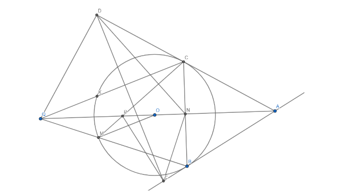 Xét tam giác NDE có ND vuông góc CM, NE vuông góc BM nên theo định lý Carnot DE vuông góc OM khi và chỉ khi: