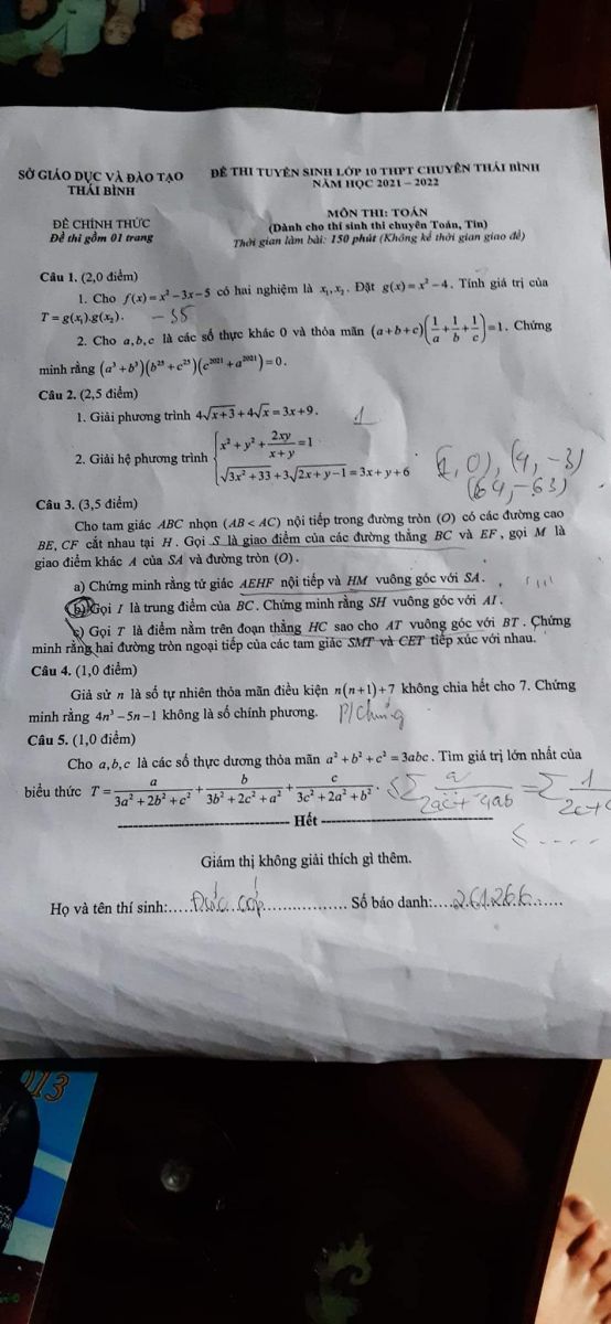 Đề chuyên Thái Bình.