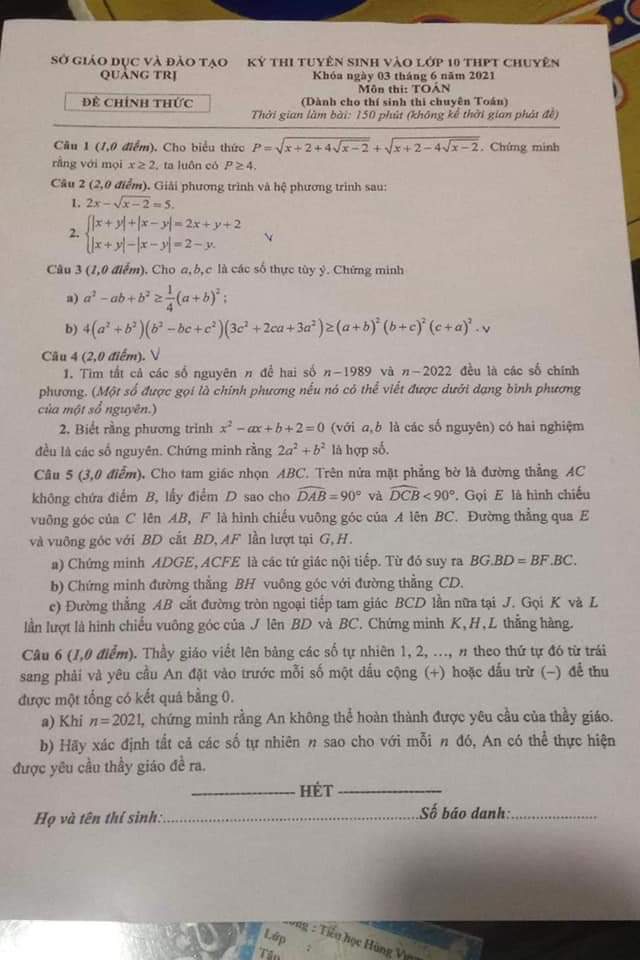 Đề chuyên của Quảng Trị.