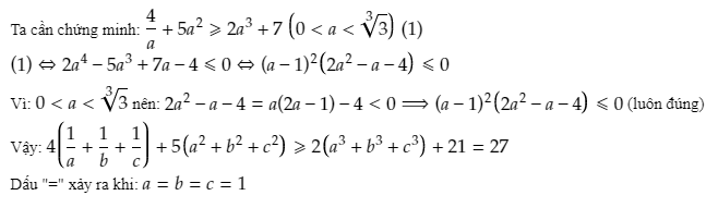 Chứng minh rằng: \(4\bigg(\dfrac{1}{a}+\dfrac{1}{b}+\dfrac{1}{c}\bigg)+5(a^2+b^2+c^2)\geq27\)